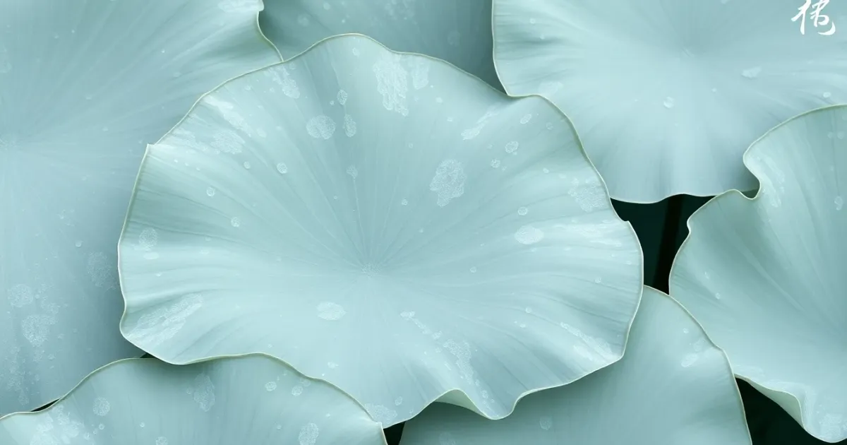 The pale green-grey of lotus leaves touched by morning frost, evoking late autumn melancholy.
